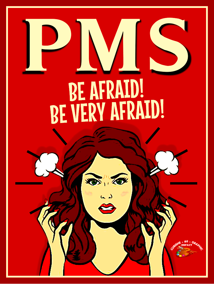 Detti innlegget er nok lettest å kjinne seg att i, om du er av slaget fylt med mye østrogen, men je ska itte avskrive deg som leser sjøl om du er skjeggete og grov i målet. Je har følelsen av at skikkelig dårlig humør itte alltid er kjønnsavhengig, men humøret je tenkje på er nok det. En gong i måneden er je som ei slags tidsinnstilt bombe som går av i tide og itte minst i utide. Hadde en mattelærer på videregående som bære såvidt itte vart tatt av dage, je husser det enda. Måten hænn brukte krittet på tavla på…Det ga en slik skrikelyd som isopor på vindu, og det er skikkelig grusomt sjøl uten hormon-svigninger. Hænn veit itte att`n bære var sekunder unna PMS-vold, av ei atten år gammal jinte på bynnelsen av nittitalet fra Ring. Det er nesten skremmende åssen humøret kænn skifte, under slik ekstrem påvirkning som hormoner i sving. Kænn gi et typisk eksempel: